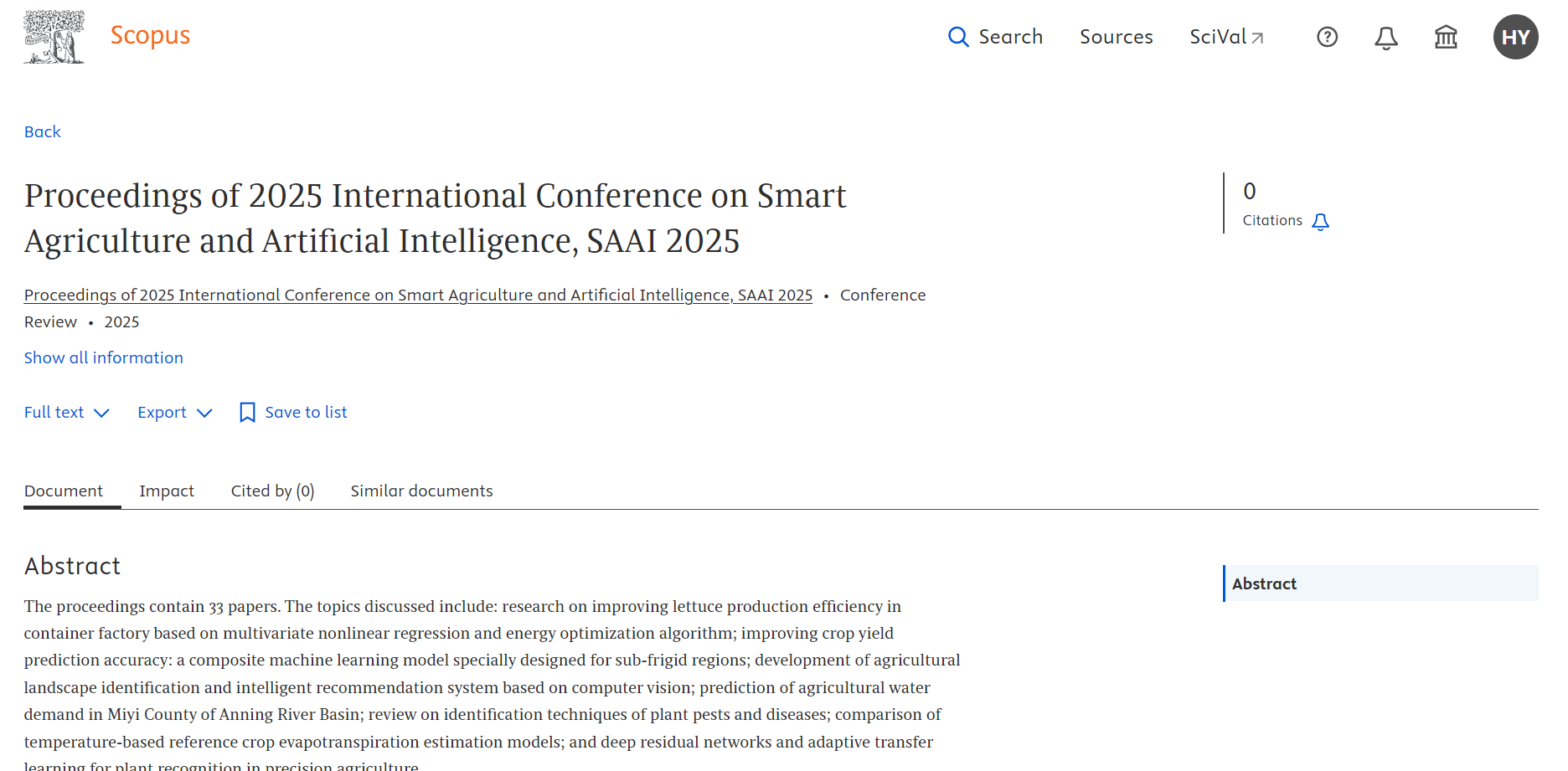 SAAI 2025: Cover丨EI Compendex丨Scopus